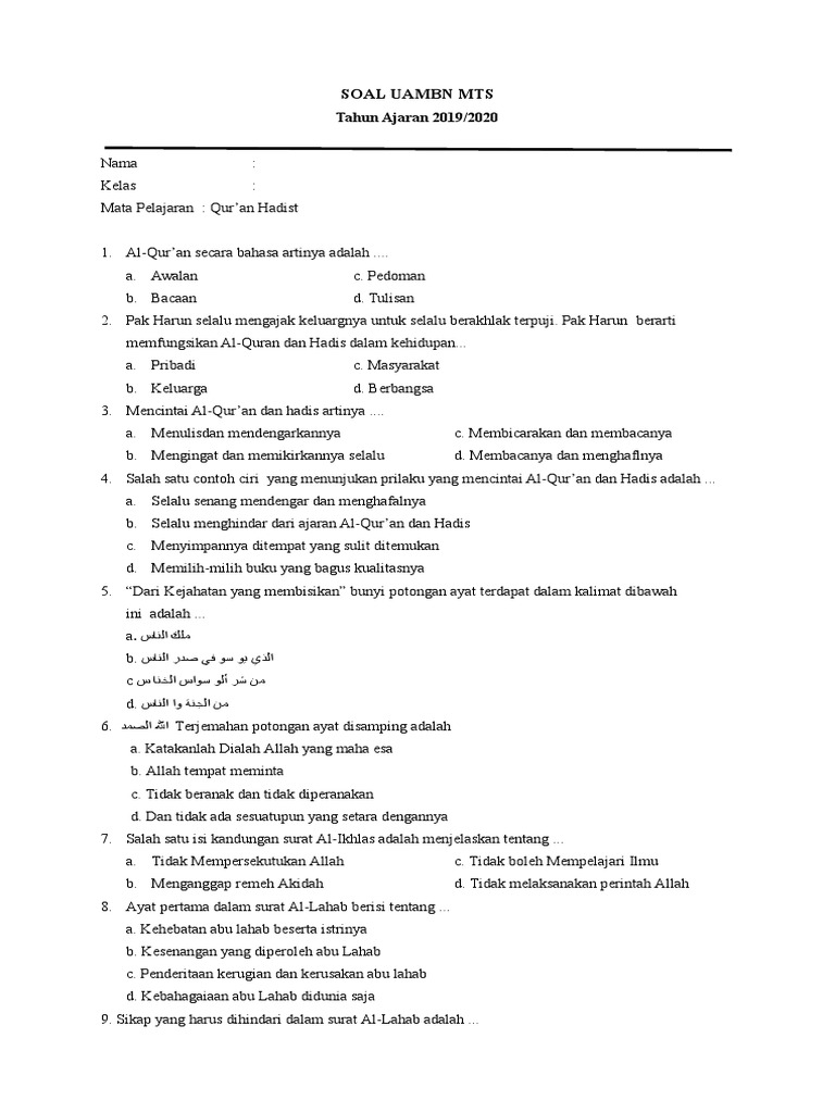 Soal Uambn Al Qur'an Hadits Mts 2020 - Soal Um Al Qur An Hadits Kelas 9 Tahun 2021 Ujian Madrasah File Pembelajaran Kurikulum2013 - Maybe you would like to learn more about one of these?
